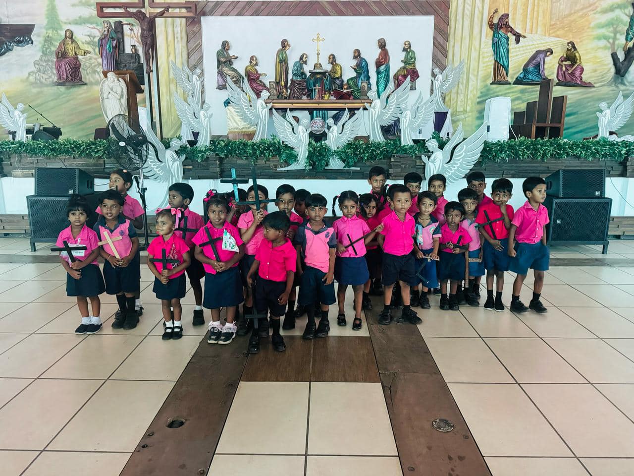 දරුවන් සමග එක්ව චතාරිකය වෙනුවෙන් ළමා පාදනමස්කාරය සිදු කිරීම