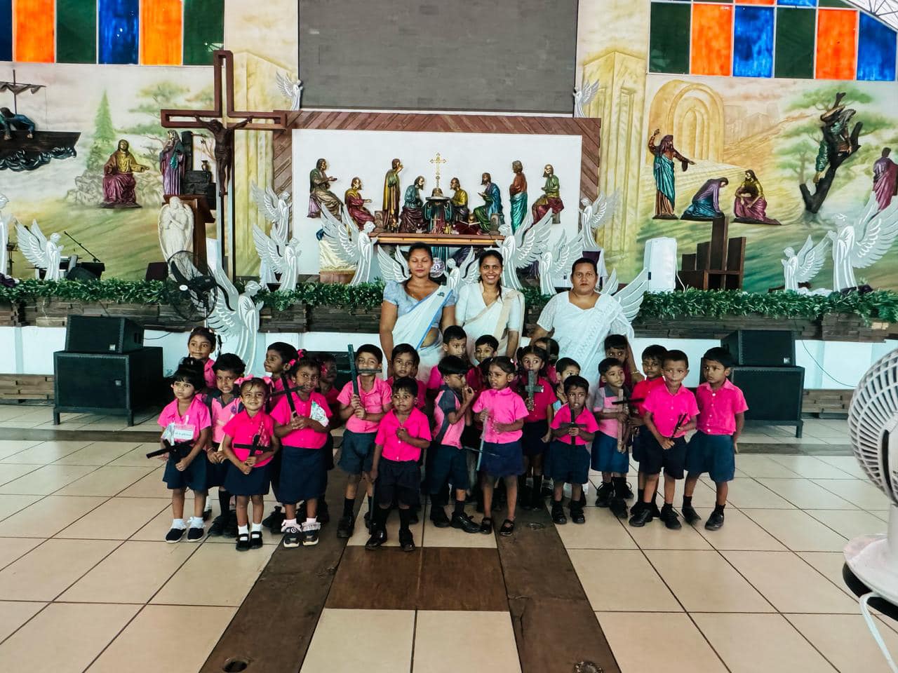 දරුවන් සමග එක්ව චතාරිකය වෙනුවෙන් ළමා පාදනමස්කාරය සිදු කිරීම
